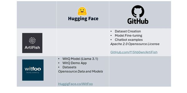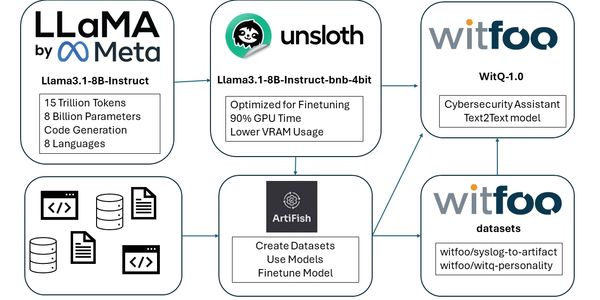 ArtiFish contains the tools used to create datasets, use them to fine-tune models and to use the models for cybersecurity analysis. The WitQ model and its datasets were created using ArtiFish.